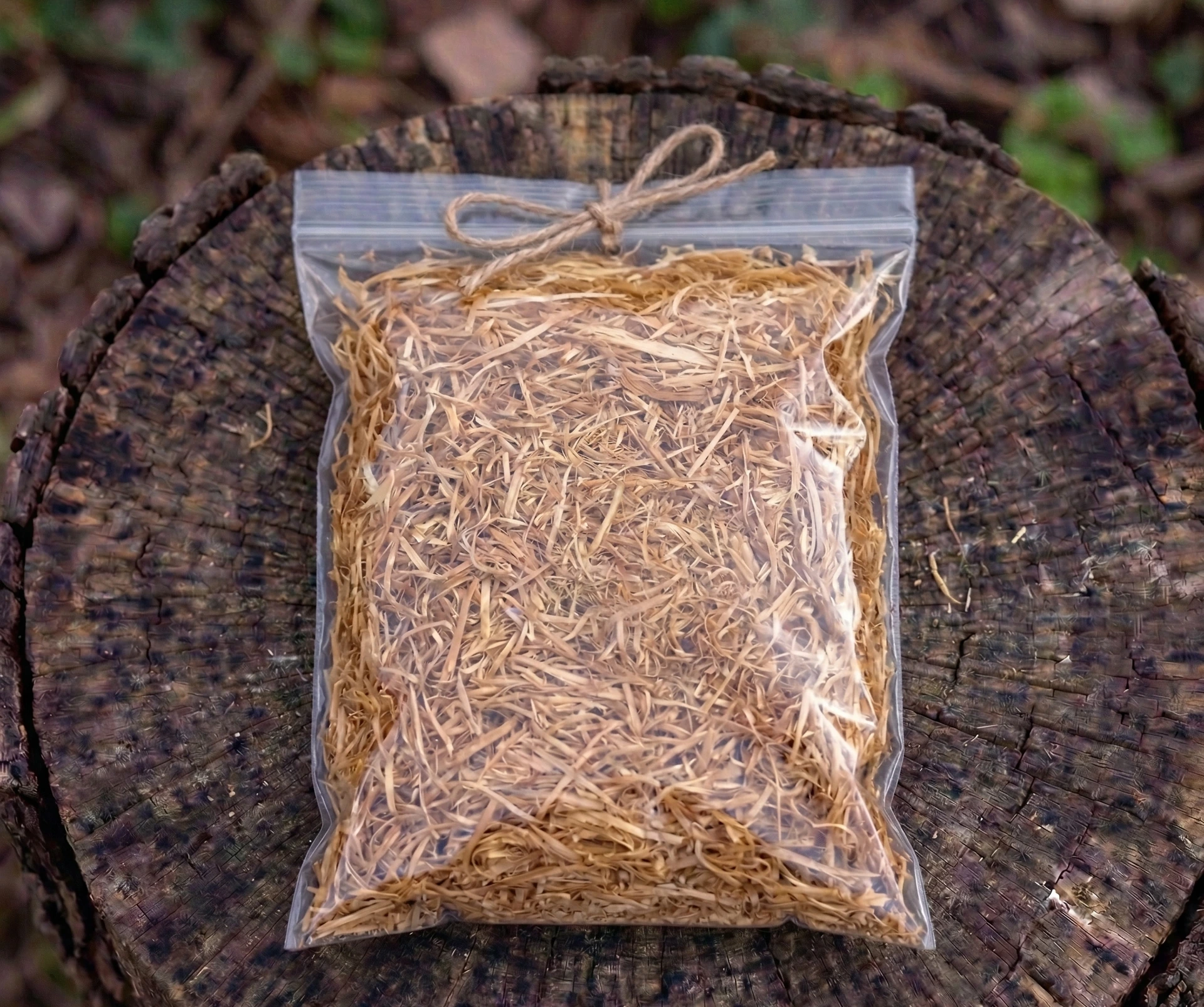 Door houtvezel in je hoornaarvallen te gebruiken, voorkom je dat insecten verdrinken en wordt de val nog selectiever. Een eventueel gevangen honingbij kan de val zo gemakkelijk verlaten via de kleine openingen.